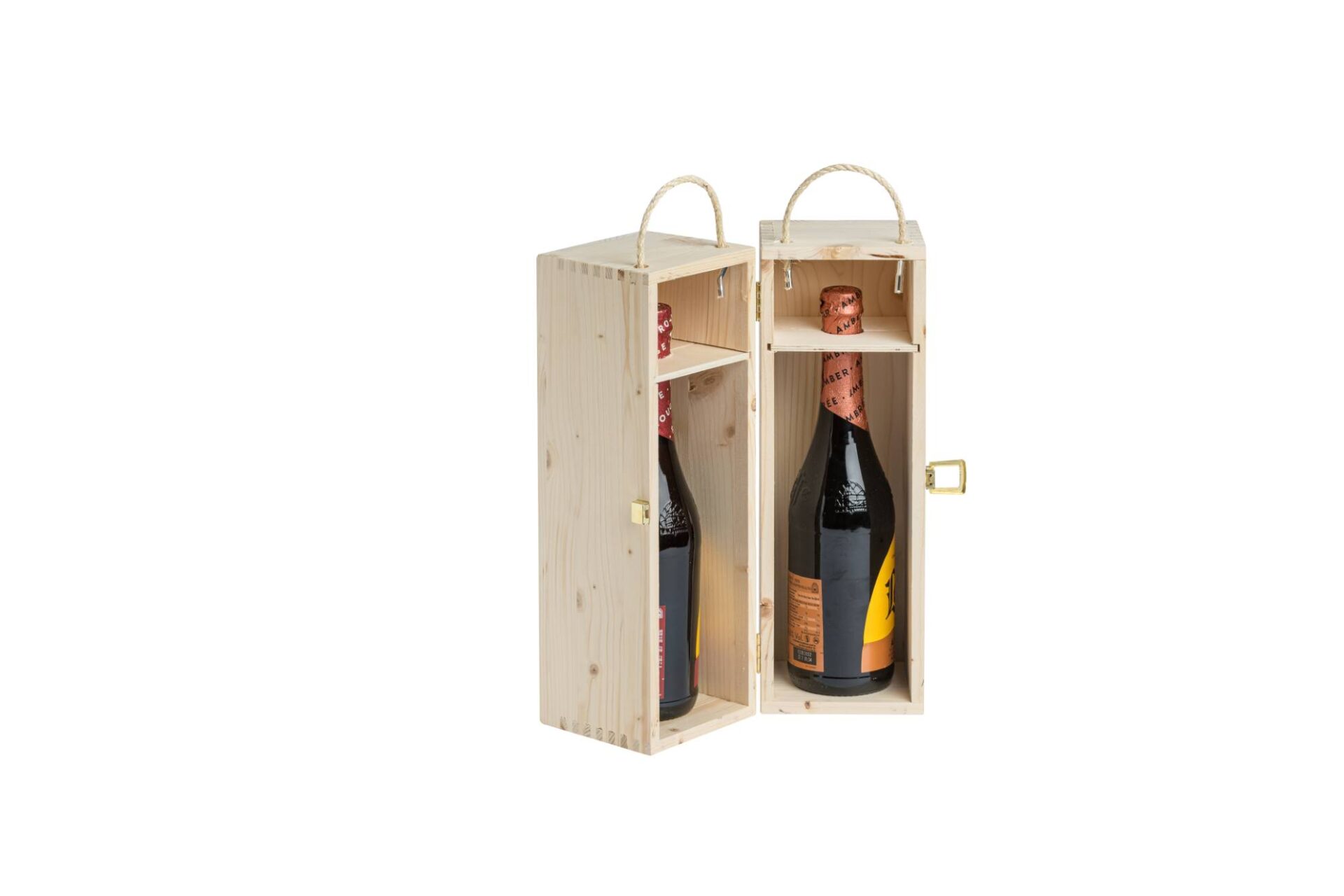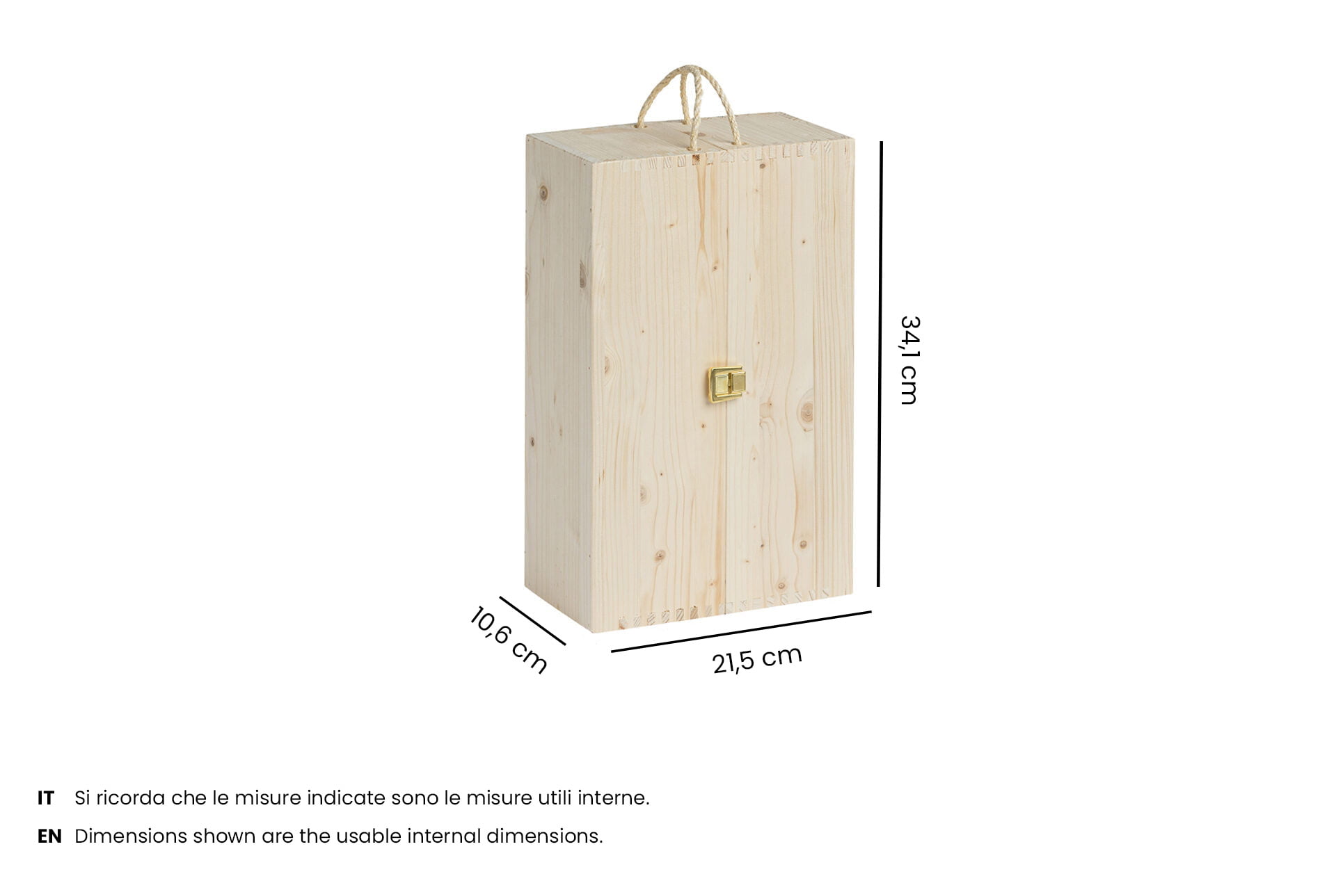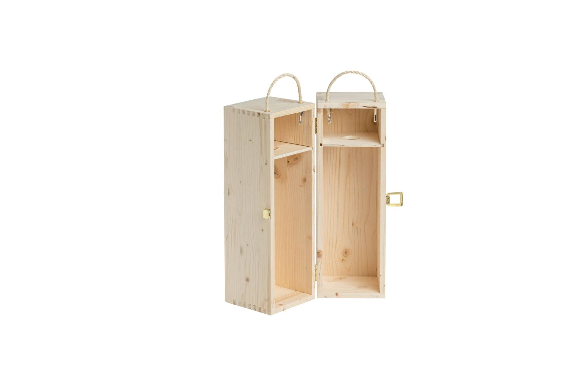 Holzkiste mit Klappöffnung – 1+1 x 750 ml Flaschen Wein – Innenmaße: 21,6X10,6X34,1