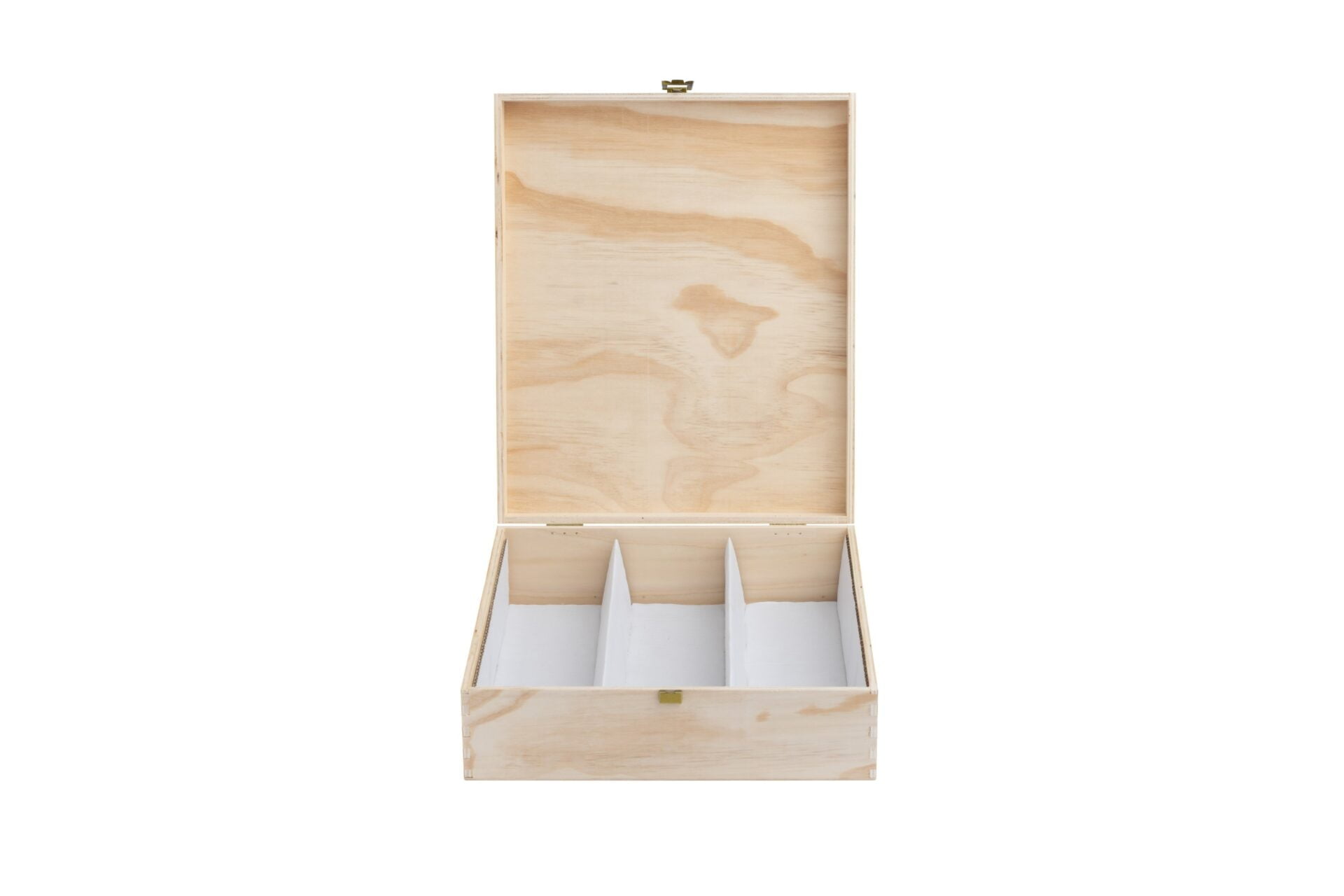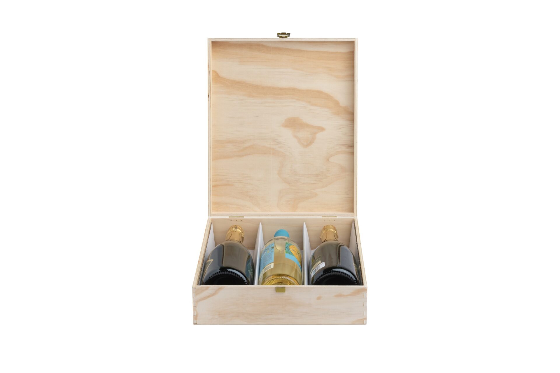 Sperrholzkiste für 3 x 750 ml Flaschen Wein – Innenmaße: 33,9X28,1X9,3