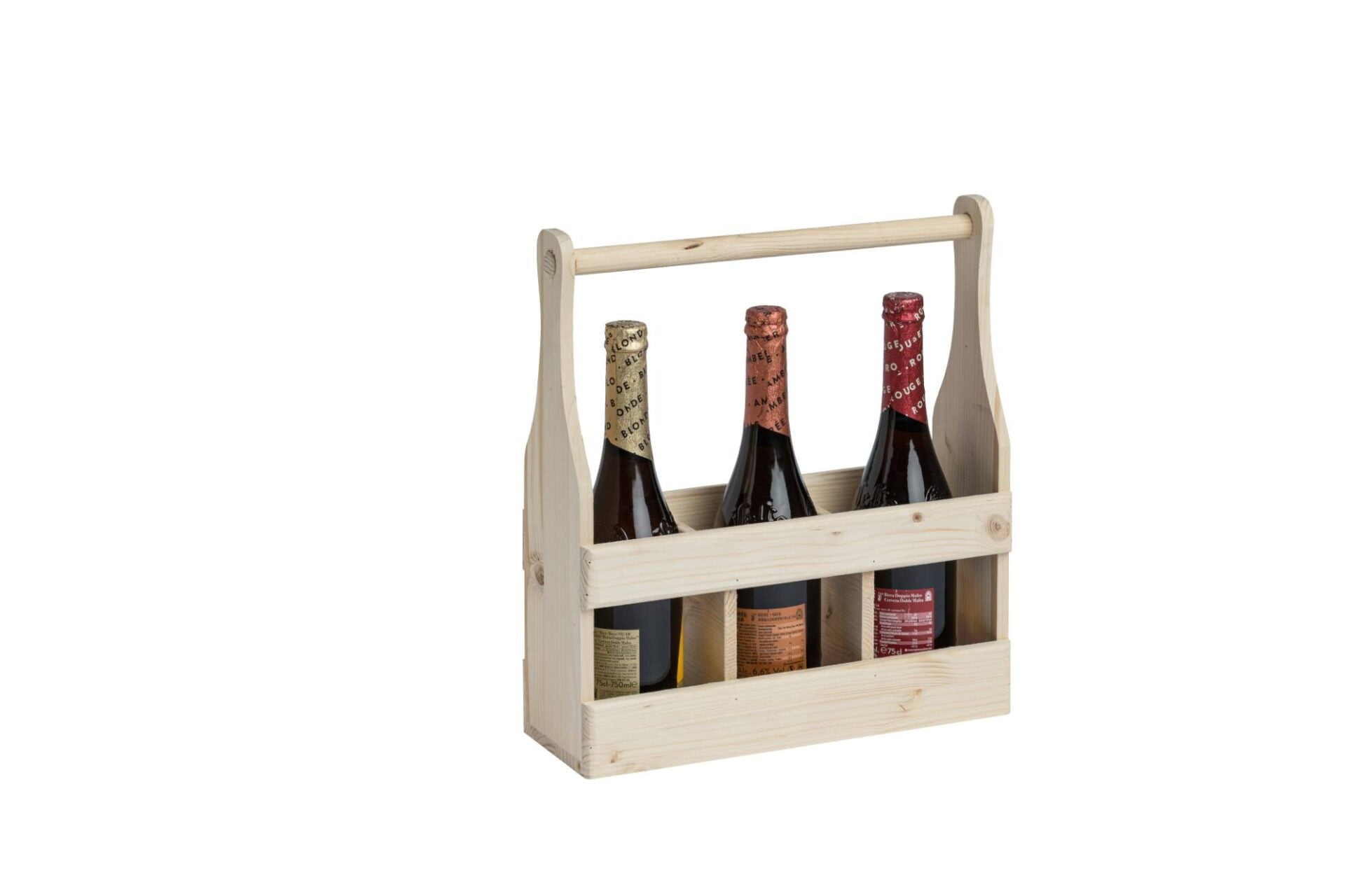 Wooden bottle carrier with handle for 3 standard bottles, 750 ml – Code MAN3