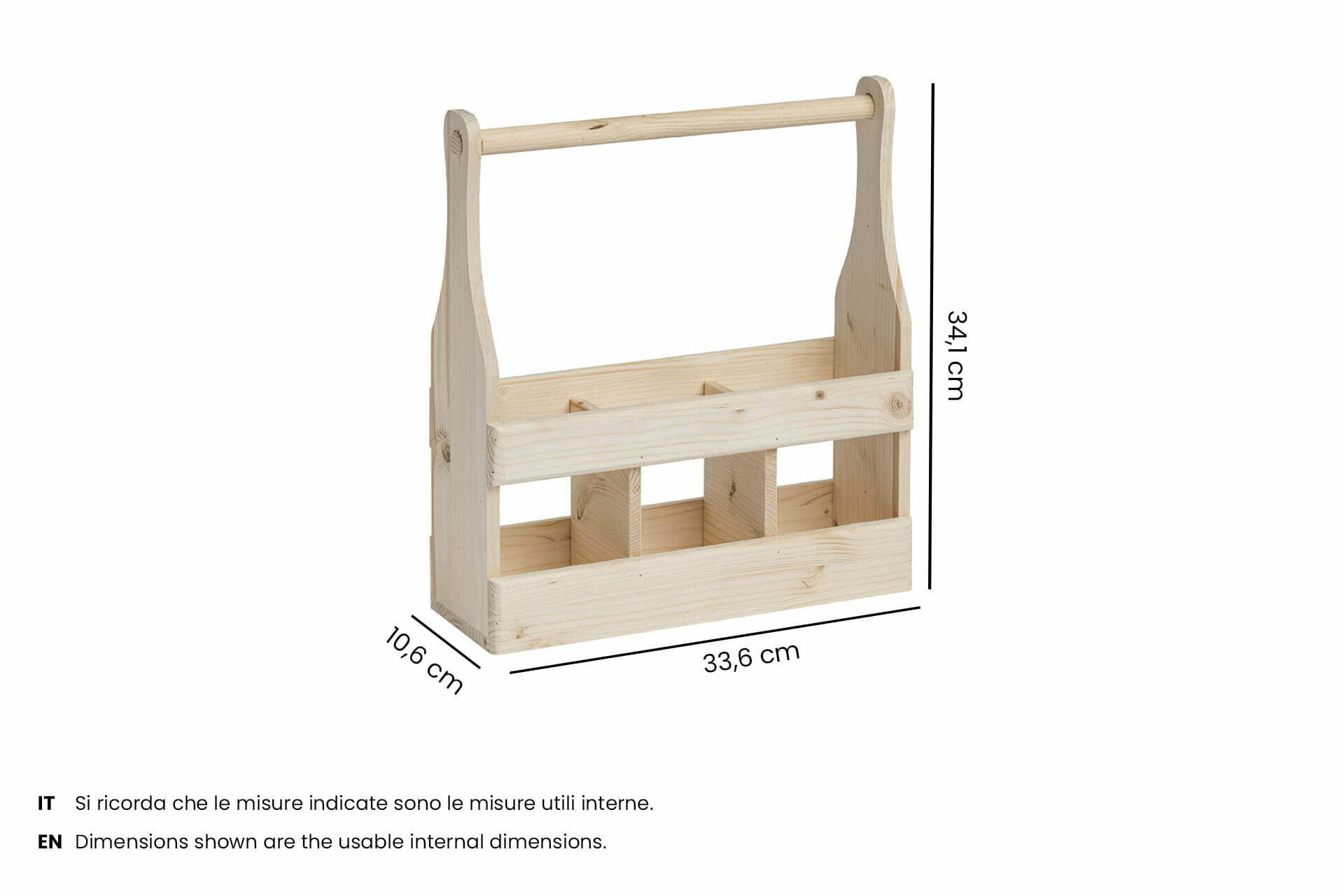 Wooden bottle carrier with handle for 3 standard bottles, 750 ml – Internal dimensions: 33.6×10.6×34.1