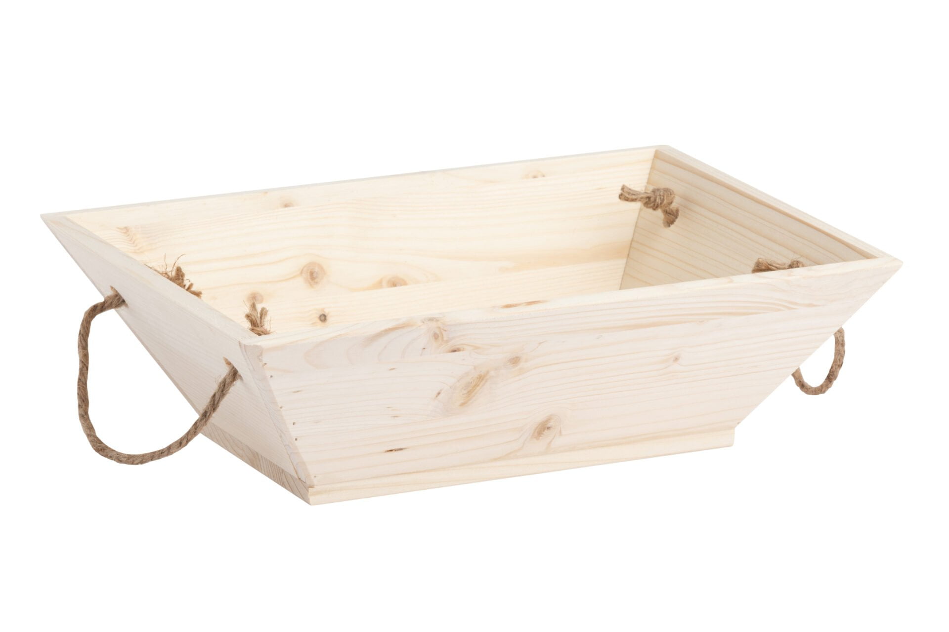 Boîte en bois type plateau avec des côtés évasés et des poignées en corde – Cod. VAS-C3