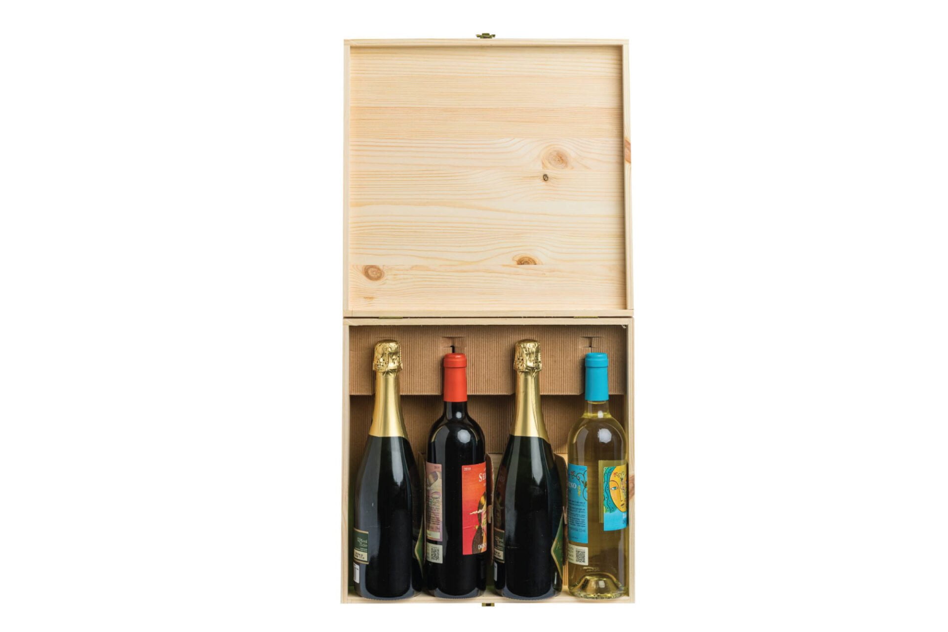 Cassetta con separatori in cartone per 4 bottiglie standard da 750 ml