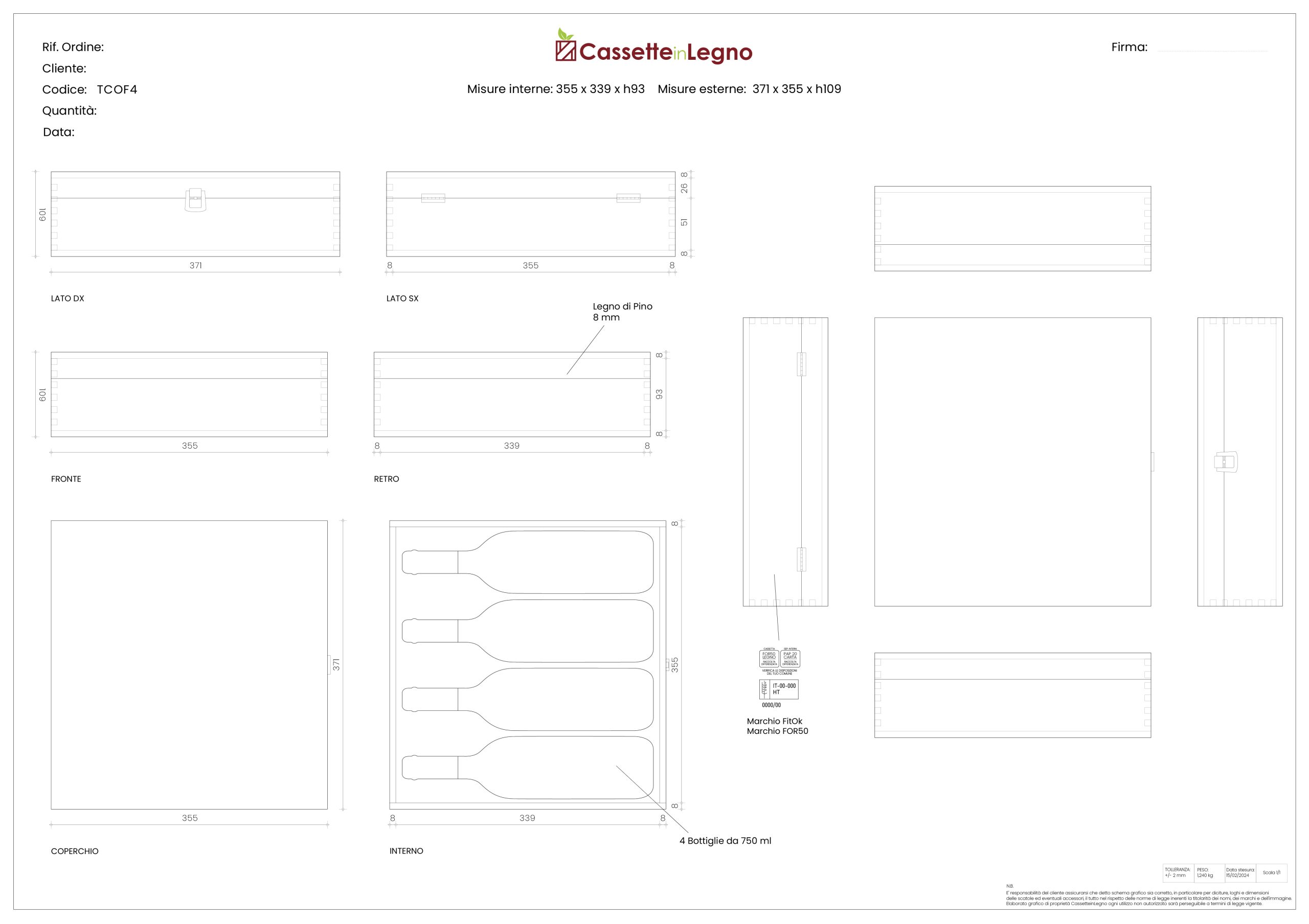 Cassetta con separatori in cartone per 4 bottiglie standard da 750 ml – Cod. TCOF4