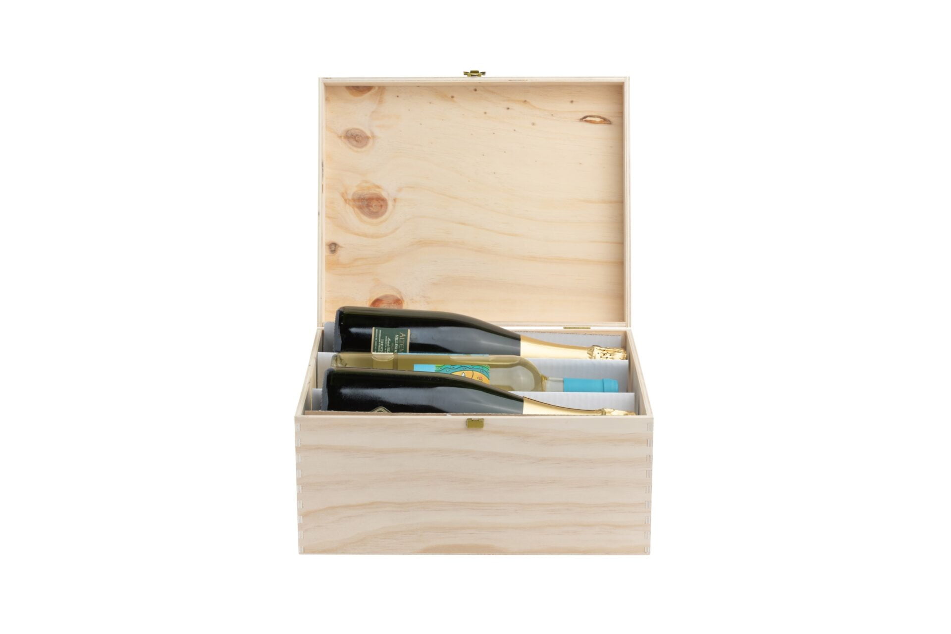 Cassetta in compensato di pino con interni in cartone per 3+3 bt standard da 750 ml