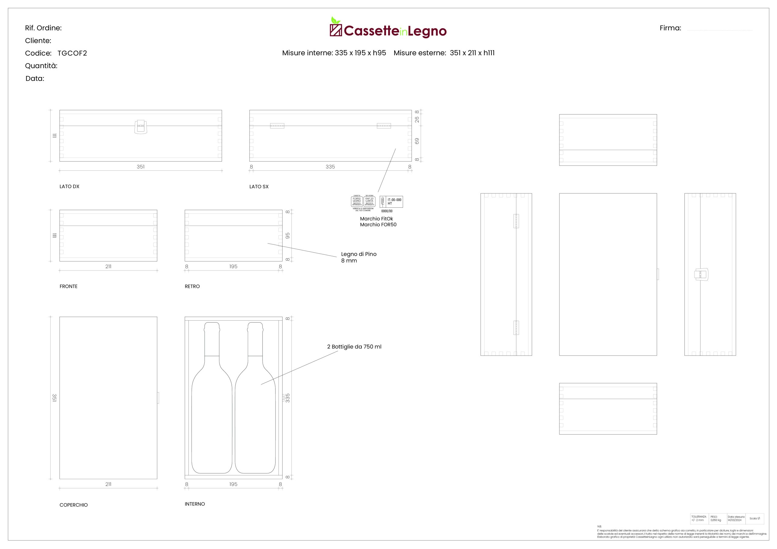 Cassetta in legno per 2 bottiglie standard da 750 ml – Cod. TGCOF2